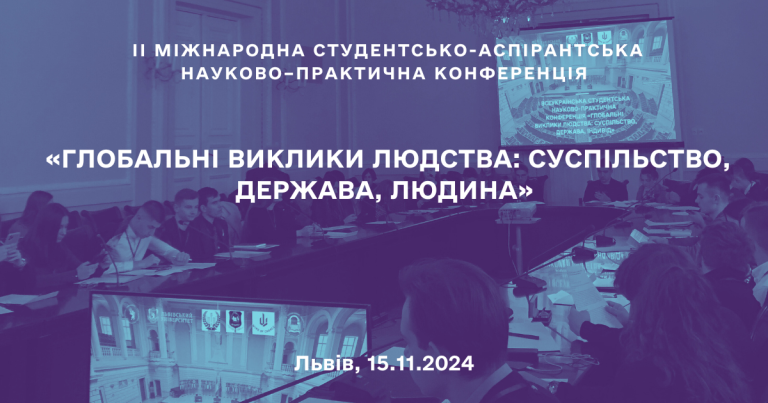 Шановні колеги! Запрошуємо вас взяти участь у II Міжнародній студентсько-аспірантській науково–практичній конференції «Глобальні виклики людства: суспільство, держава, людина», яка відбудеться 15 листопада у Львівському національному університеті імені Івана Франка. Організатори Конференції: Наукове товариство студентів, аспірантів, докторантів і молодих вчених Львівського національного університету імені Івана Франка; Наукове товариство студентів, аспірантів, докторантів і молодих вчених Харківського національного … Читати далі II Міжнародна студентсько-аспірантська науково–практична конференція «Глобальні виклики людства: суспільство, держава, людина»